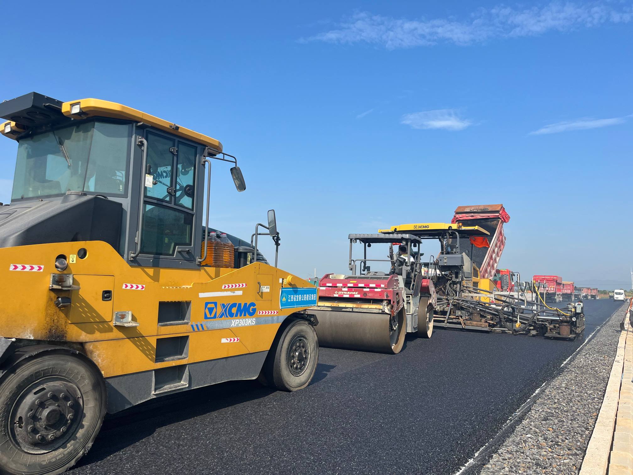 G320高安境内改线项目路面摊铺现场,高温炽热挡不住施工人员的工作热情,摊铺机正紧张有序地开展AC-20沥青下面层摊铺作业,压路机、运料车等各类机械设备井然有序配合作业,施工班组以每天2公里的速度稳步推进项目建设。丰城市新城区至丰城南站公路新建工程施工现场,管理人员利用均质化智能管控系统,对摊铺温度、行进速度、碾压轨迹等关键数据进行实时采集、动态监测,实现了施工质量的精准控制和工程安全的智能预警。一条如黑色缎带般平整的路面,在机械与工人的默契配合下,不断向前延伸。